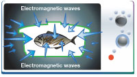 Penetration of short-length, high-frequency, electromagnetic waves generated from the magnetron in the microwave oven cooks the food. |