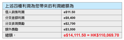 * 例子:新業主購買1000eV特別eV配套,可為推薦人帶來e$205的開拓獎勵及額外開拓獎勵。如推薦人只符合3份額外獎勵(EI)資格,