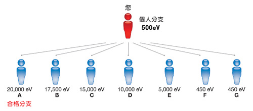 一旦達至合格要求,您的每一個業主分支所取得的eV額將為您帶來分支差額利潤(以您的網絡總銷售額所為您帶來的應得百分比與這些分支本身的總銷售額的應得百分比之差額為根據)。我們將根據下圖的個人銷售利潤及分支差額利潤圖表,計算您應得的利潤。